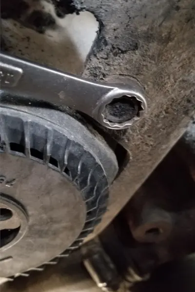 - Remove the serpentine belt if you still have one in place (the serpentine belt on this truck was burned and thrown off).