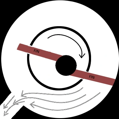 - The fins spinning around create wind, just like a fan, oscillating in and out, round and round.