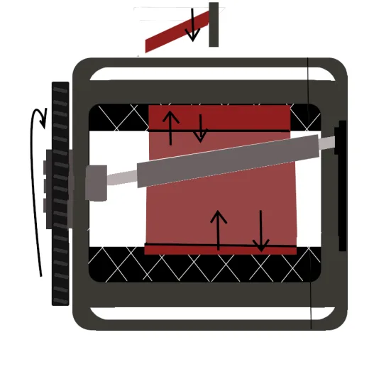 - The rod is connected to the center position of the pulley at the front of the container. The other end of the rod is connected to the back of the container off-center.