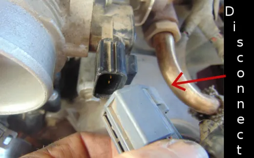 - Disconnect the wire connection attached to the temperature probe installed on top of the thermostat housing.