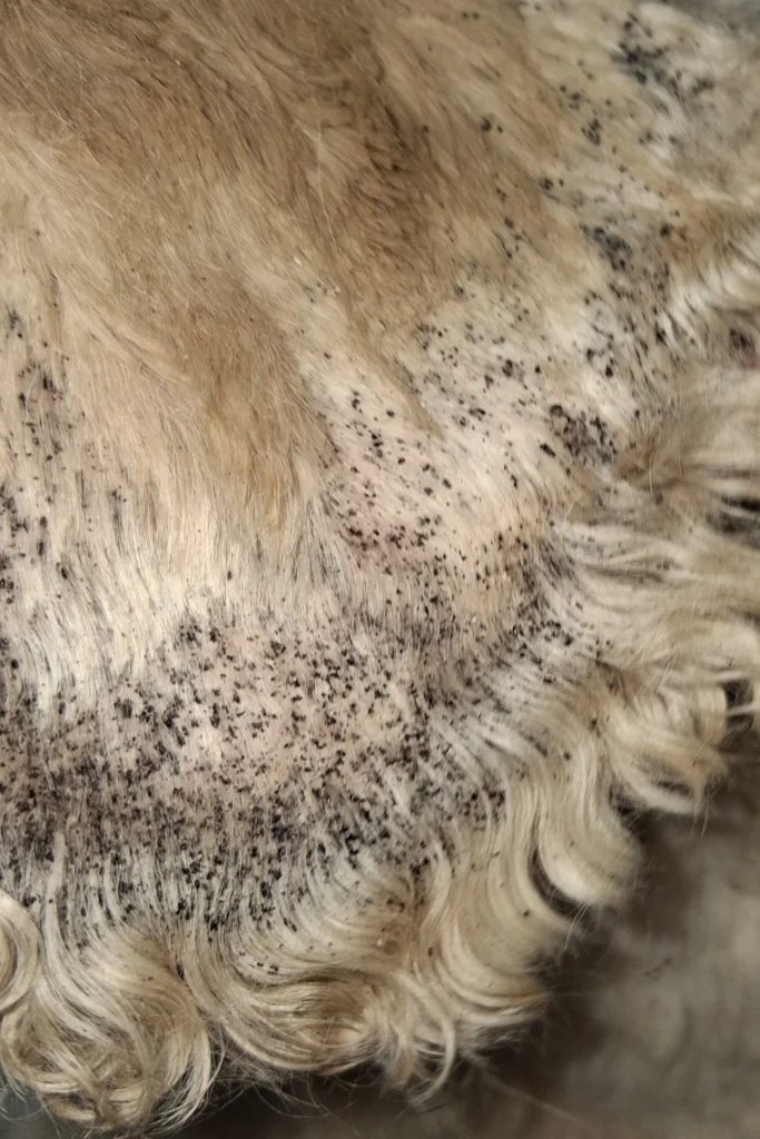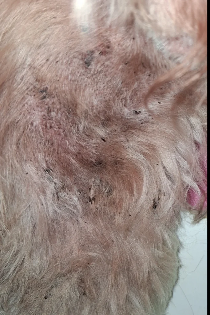 The pet parent was completely unaware of the infestation, as she had been focused on finding a specialized diet to manage her dog’s chronic skin rashes. Her dedication to his health is commendable, which made the news even more shocking. She was understandably horrified when I messaged her to report that the ‘rash’ was now a severe flea infestation.