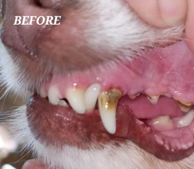 There are some situations we can’t do anything. When the build-up is so bad the tooth has become loose we can’t pick it off or the tooth could come out. Or when the build-up has surpassed the gum line and is infecting the gums. These situations require a veterinarians expertise to save the tooth if possible or pull them out.