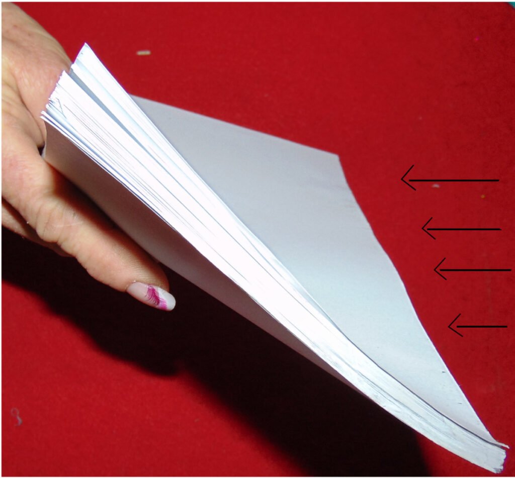 - Stack the pages of your printed manuscript so the edges are nice and even. Edges flush to one another.