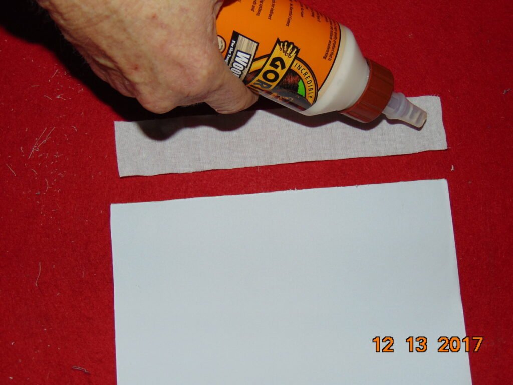 - Cut a swatch of cloth the length of the book and 3x the width. Glue this to the spine edge, centering the spine in the middle of the cloth. Then set on end to dry. This cloth will serve to keep the pages together along with the glue you already applied.. Make sure to glue the “wings” onto the page as well.