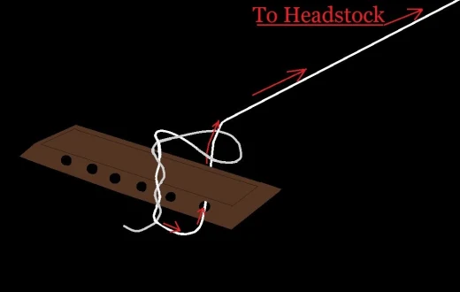 - Pull the thread through the loop and continue pulling until all excess string is pulled through and the loop can be placed on the bridge and pulled snugly.